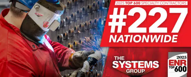 The Systems Group Ranked #227 on ENR’s 2025 Top 600 Specialty Contractors List El Dorado, Ark., October 28, 2025 – The Systems Group is proud to announce its ranking as #227 in the 2025 Engineering News-Record (ENR) list of the Top 600 Specialty Contractors in the United States. This annual report highlights the most successful